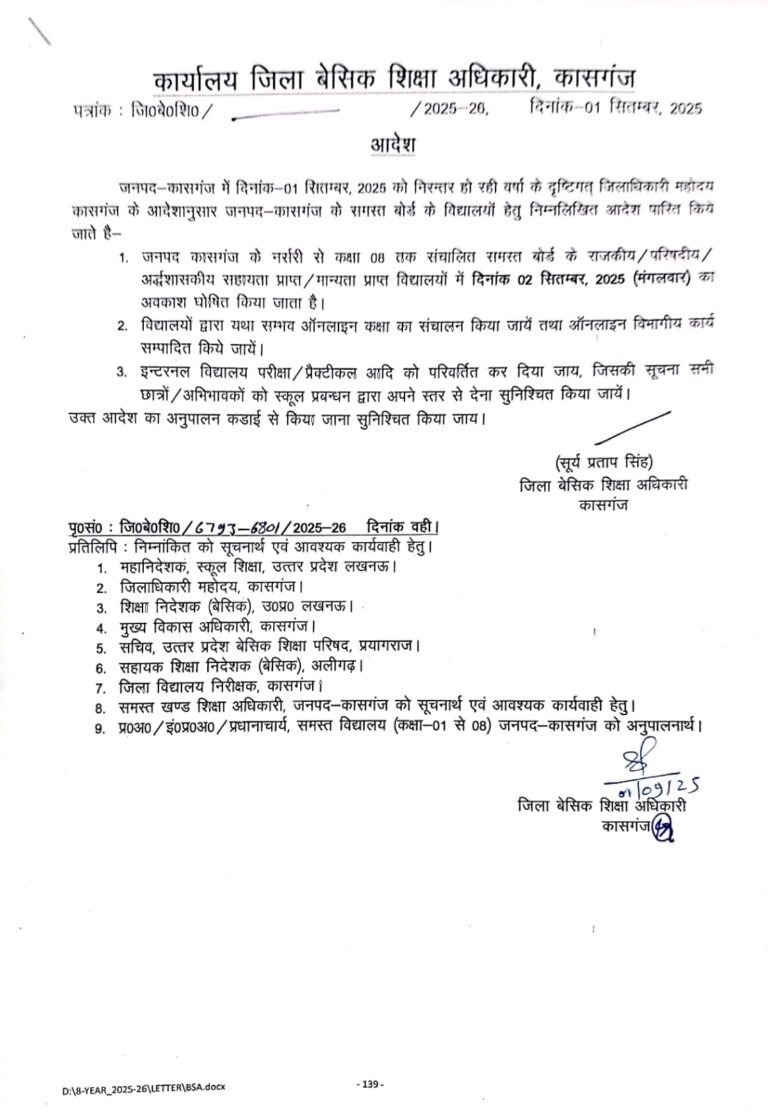इस जनपद में कल का भी अवकाश घोषित, देखें आदेश September 1, 2025 by Jaswant Singh इस जनपद में कल का भी अवकाश घोषित, देखें आदेश