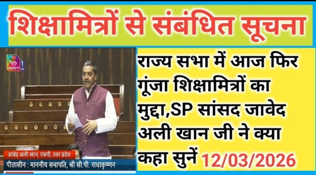 राज्य सभा में आज फिर गूंजा शिक्षामित्रों का मुद्दा,SP सांसद जावेद अली खान जी ने क्या कहा सुनें