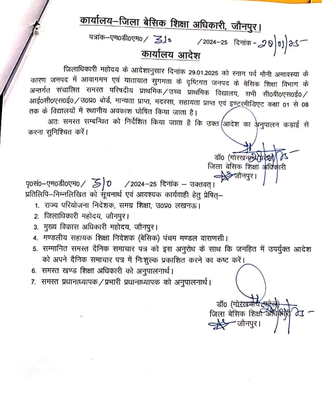 29 जनवरी को स्नान पर्व मौनी अमावस्या के कारण जनपद में 8वीं तक विद्यालयों में अवकाश घोषित January 28, 2025 by Jaswant Singh 29 जनवरी को स्नान पर्व मौनी अमावस्या के कारण जनपद में 8वीं तक विद्यालयों में अवकाश घोषित