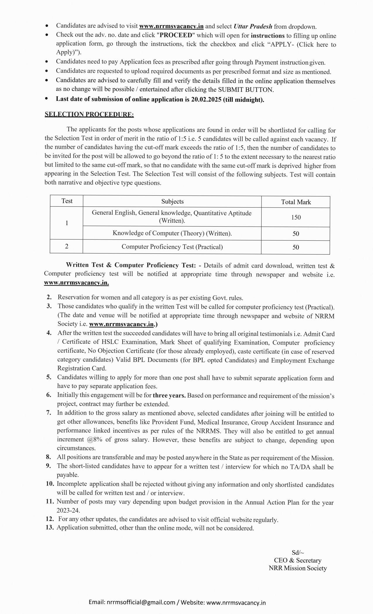 उत्तर प्रदेश राष्ट्रीय ग्रामीण मनोरंजन मिशन सोसाइटी (एनआरआरएमएस) ने विभिन्न पदों पर 11,335 रिक्तियों के लिए भर्ती अधिसूचना जारी की है। यह भर्ती तीन वर्ष के अनुबंध पर होगी, जिसे प्रदर्शन के आधार पर आगे बढ़ाया भी जा सकता है। यह परियोजना विश्व बैंक द्वारा वित्तपोषित है और दीनदयाल उपाध्याय ग्रामीण अवसंरचना विकास (डीडीयू आरजेडी) योजना के तहत संचालित है।