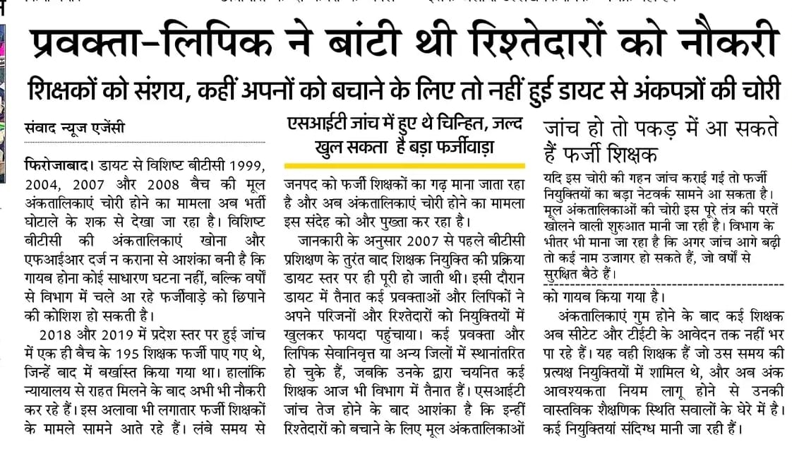 रिश्तेदारों को नौकरी, शिक्षकों को संशय, कहीं अपनों को बचाने के लिए तो नहीं हुई डायट से अंकपत्रों की चोरी