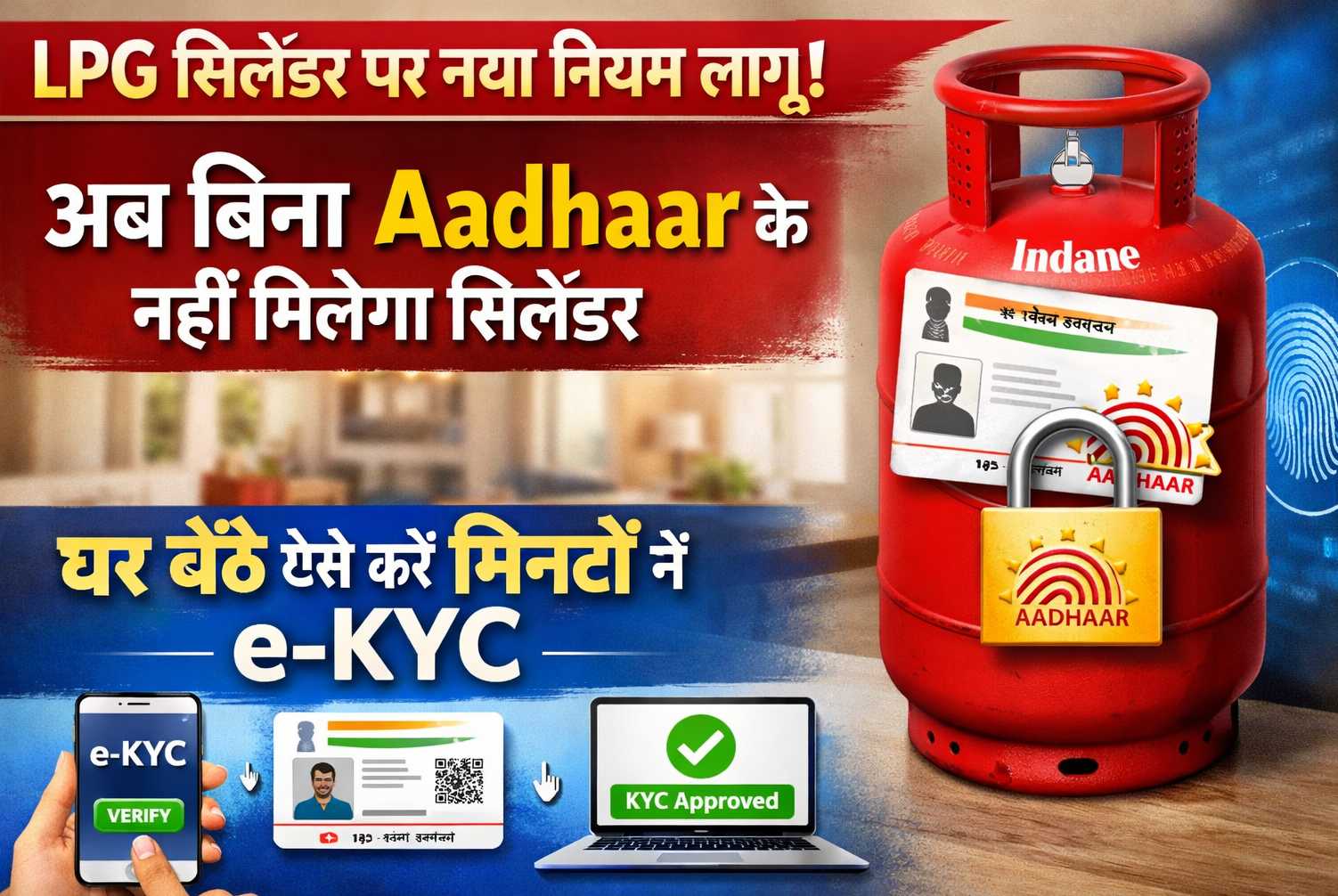 LPG सिलेंडर पर नया नियम लागू! अब बिना Aadhaar के नहीं मिलेगा सिलेंडर, घर बैठे ऐसे करें मिनटों में e-KYC