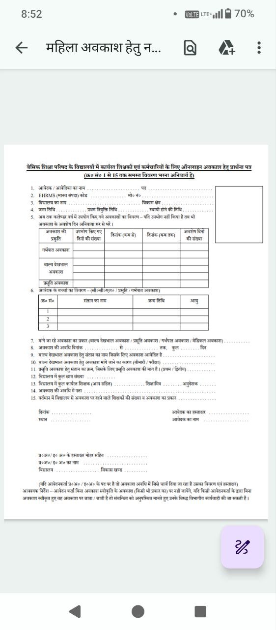 ऑनलाइन अवकाश हेतु आवेदन पत्र डाउनलोड करें