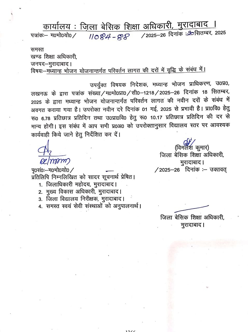 मध्यान्ह भोजन योजनान्तर्गत परिवर्तन लागत की दरों में वृद्धि के संबंध में। September 20, 2025 by Jaswant Singh मध्यान्ह भोजन योजनान्तर्गत परिवर्तन लागत की दरों में वृद्धि के संबंध में।