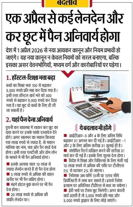 एक अप्रैल से कई लेनदेन और कर छूट में पैन अनिवार्य होगा