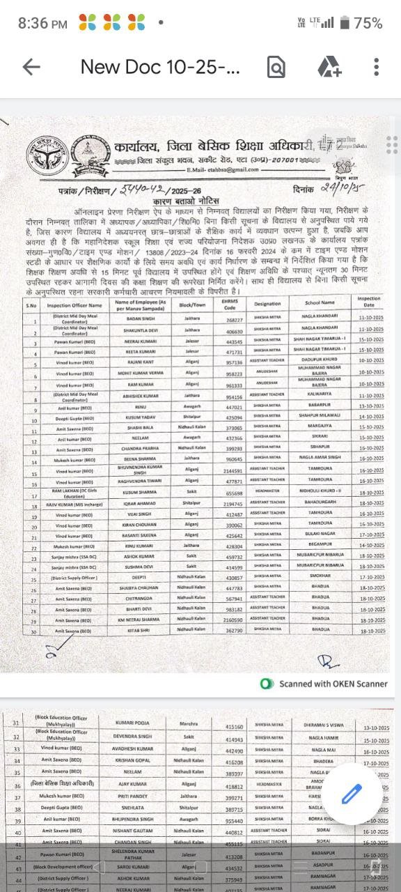 निम्नलिखित शिक्षकों एवं शिक्षामित्रों तथा को एक दिन की सैलरी रुकी,तीन दिन के अंदर स्पष्टीकरण मांगा गया, पढ़िए पूरा मामला October 28, 2025 by Jaswant Singh निम्नलिखित शिक्षकों एवं शिक्षामित्रों तथा को एक दिन की सैलरी रुकी,तीन दिन के अंदर स्पष्टीकरण मांगा गया, पढ़िए पूरा मामला