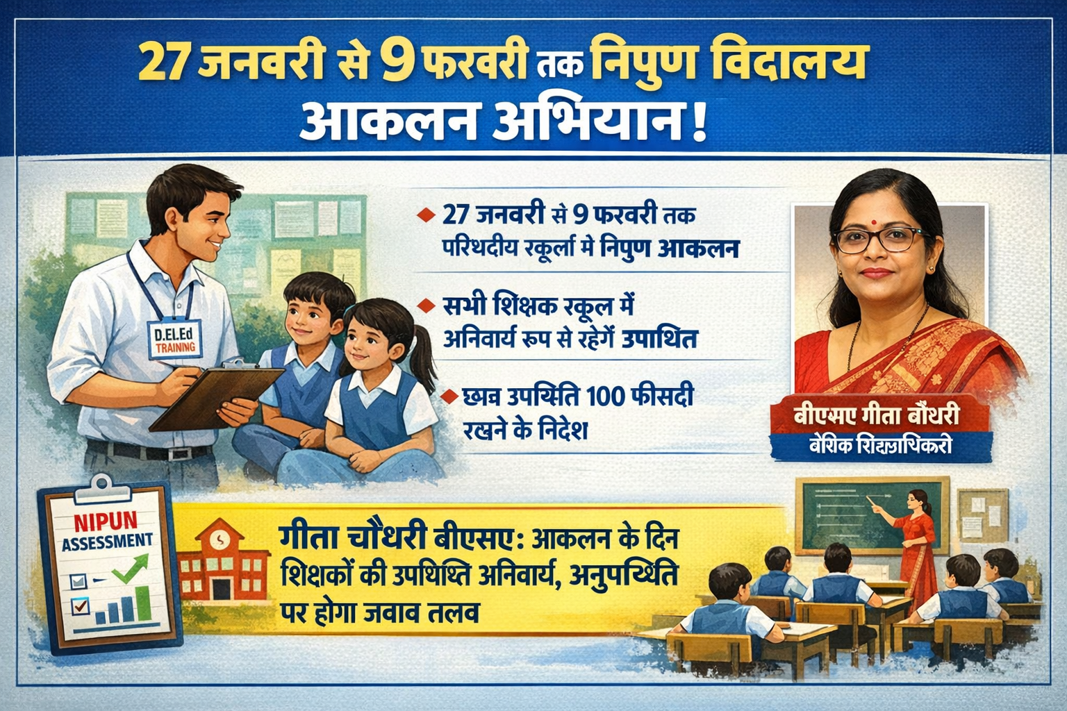 27 जनवरी से शुरू होगा निपुण विद्यालय आकलन, 9 फरवरी तक चलेगा अभियान