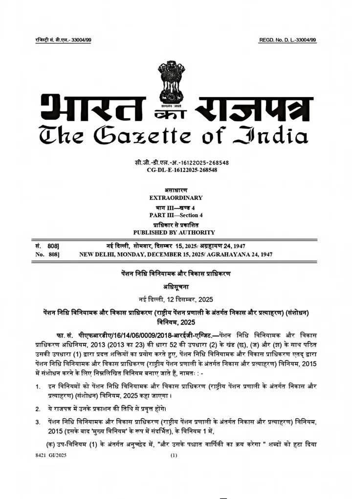 NPS से 80% निकासी का गजट नोटिफिकेशन जारी