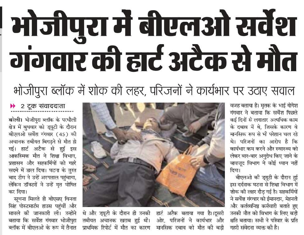 BLO की ड्यूटी के दौरान मौत से हड़कंप:* SIR का अधिक प्रेशर होने की वजह से गई जान, अधिकारी लगातार कर रहे टॉर्चर