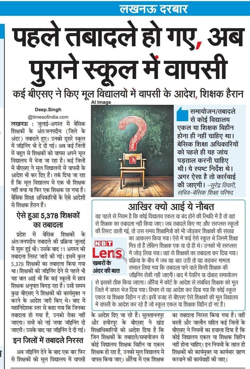 पहले तबादले हो गए, अब पुराने स्कूल में वापसी, कई बीएसए ने किए मूल विद्यालयों में वापसी के आदेश, शिक्षक हैरान: आखिर क्यों आई ये नौबत