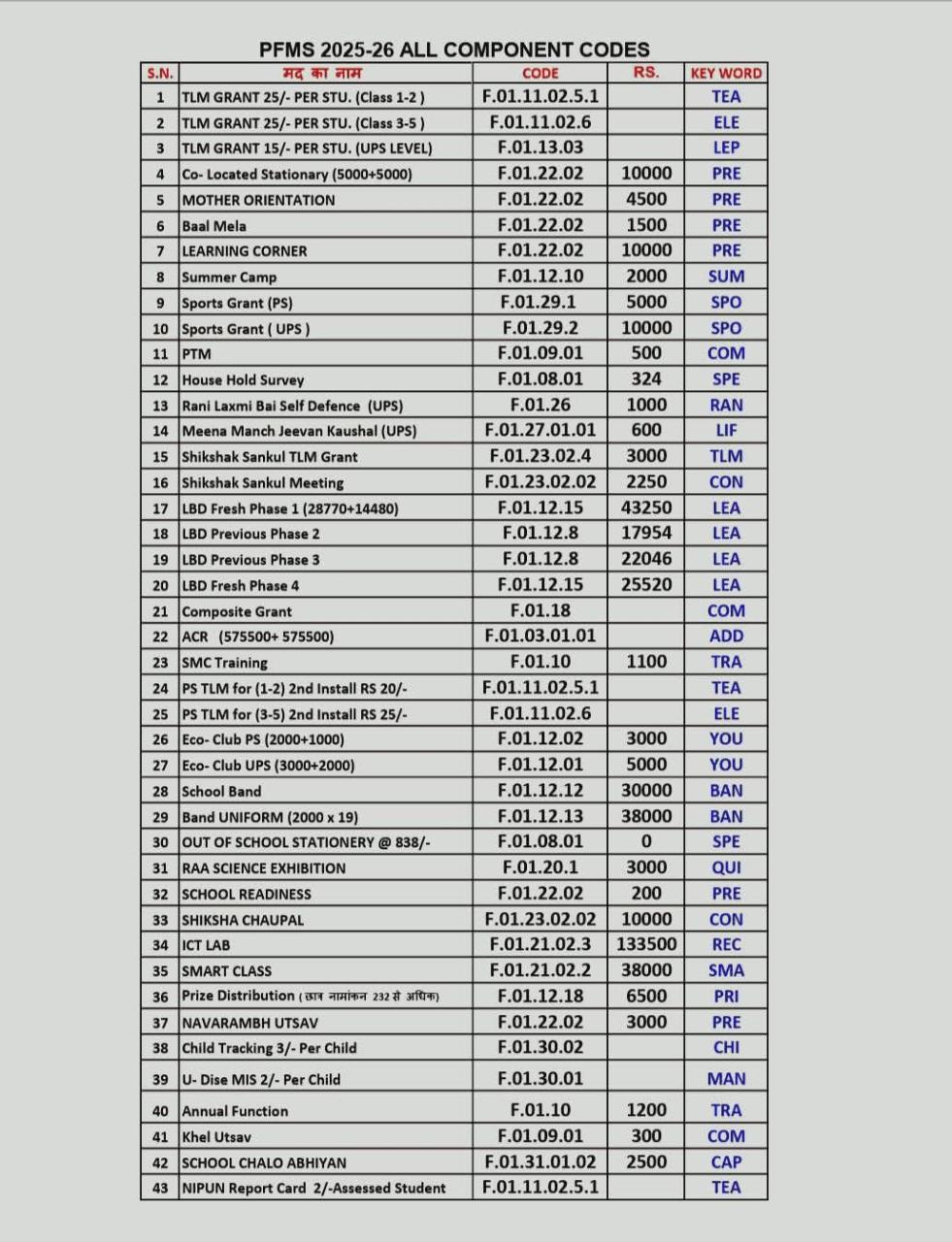 PFMS 2025-26 के सभी Component Codes जारी, देखें State PFMS Cell के नाम और Contact Numbers