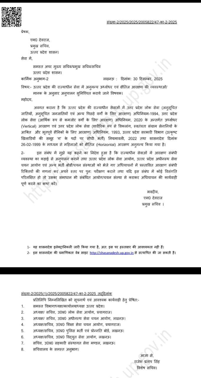 प्रमुख सचिव नियुक्ति देवराज ने आदेश जारी किए-* सरकारी भर्तियों में आरक्षण के नियमों का अक्षरश: पालन हो – देवराज !! CM योगी के आदेश के बाद दिशा निर्देश जारी !