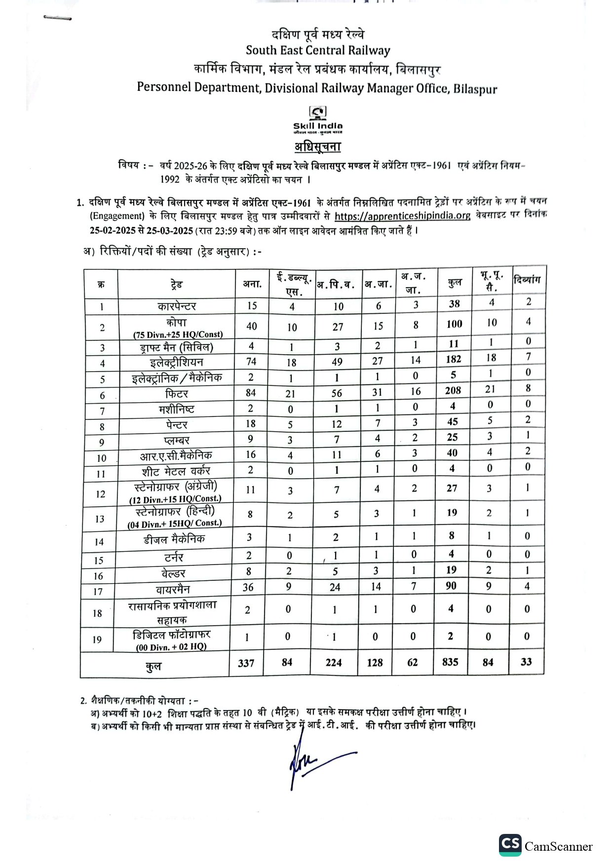 रेलवे भर्ती का 835 पदों पर नोटिफिकेशन जारी, आवेदन शुरू