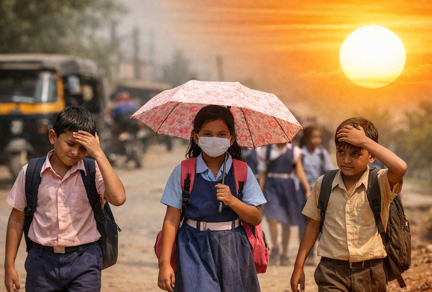 देश के कई हिस्सों में इस समय गर्मी अपने चरम पर है। दोपहर की धूप ऐसी लग रही है मानो सीधे शरीर को झुलसा दे। कुछ दिन पहले हल्की राहत जरूर मिली थी, लेकिन अब फिर से तापमान तेजी से बढ़ गया है। सड़कों पर भीड़ कम हो गई है और सबसे ज्यादा परेशानी स्कूल जाने वाले बच्चों को हो रही थी।