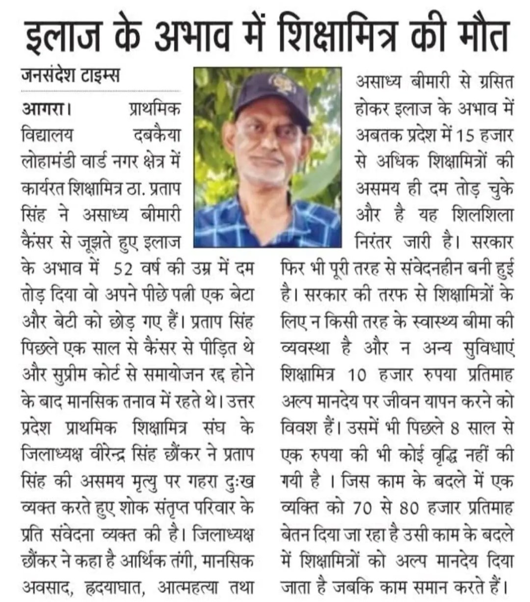 दुखद: इलाज के अभाव में शिक्षामित्र की मौत October 19, 2025 by Jaswant Singh दुखद: इलाज के अभाव में शिक्षामित्र की मौत