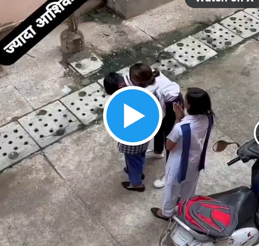 दरअसल यह वीडियो सोशल मीडिया प्लेटफॉर्म X पर खूब वायरल हो रहा है। वीडियो को @Amrita_2121 नाम के अकाउंट से शेयर किया गया है। इसमें तीन स्कूली बच्चे दिखाई देते हैं, जो क्लास छोड़कर मोहल्ले में आशिकी फरमाते नजर आते हैं। लड़का कभी दोनों लड़कियों को गले लगाता। कभी किसी को गोद में उठाकर घुमाता तो कभी किस करने लगता। यह सब किसी खाली जगह पर नहीं बल्कि खुले गली-मोहल्ले में हो रहा था। आस-पड़ोस के लोग बालकनी से खड़े होकर यह नजारा देख रहे थे और जोर-जोर से हंस भी रहे थे।