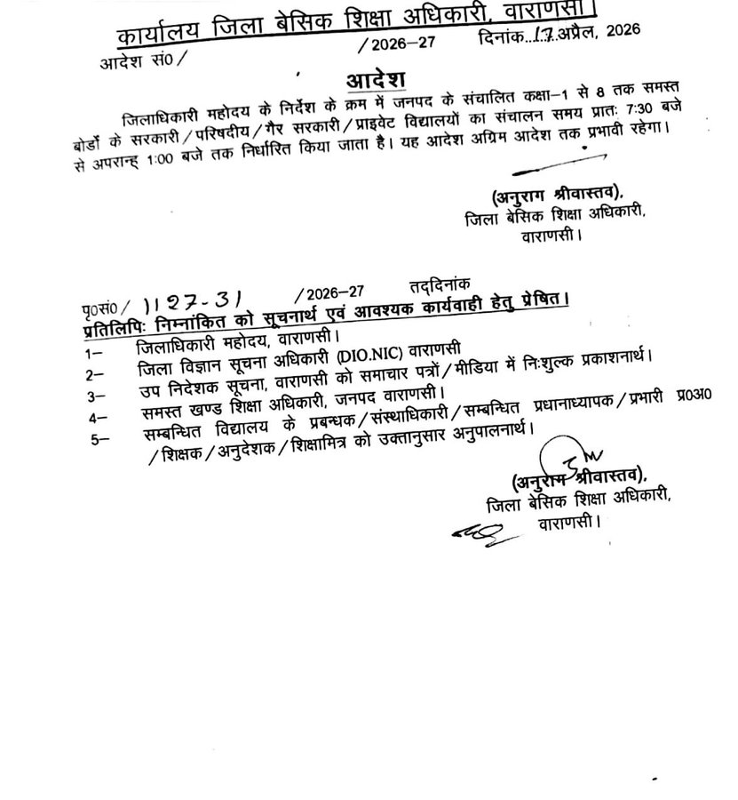 जिले में स्कूल टाइमिंग बदली: कक्षा 1 से 8 तक अब सुबह 7:30 से दोपहर 1:00 बजे तक पढ़ाई April 18, 2026 by Ravi Singh जिले में स्कूल टाइमिंग बदली: कक्षा 1 से 8 तक अब सुबह 7:30 से दोपहर 1:00 बजे तक पढ़ाई