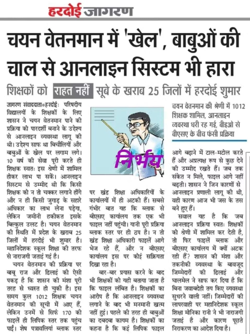 चयन वेतनमान में ‘खेल’ बाबुओं की चाल से ऑनलाइन सिस्टम भी हुआ फेल December 2, 2025 by Ravi Singh चयन वेतनमान में ‘खेल’ बाबुओं की चाल से ऑनलाइन सिस्टम भी हुआ फेल