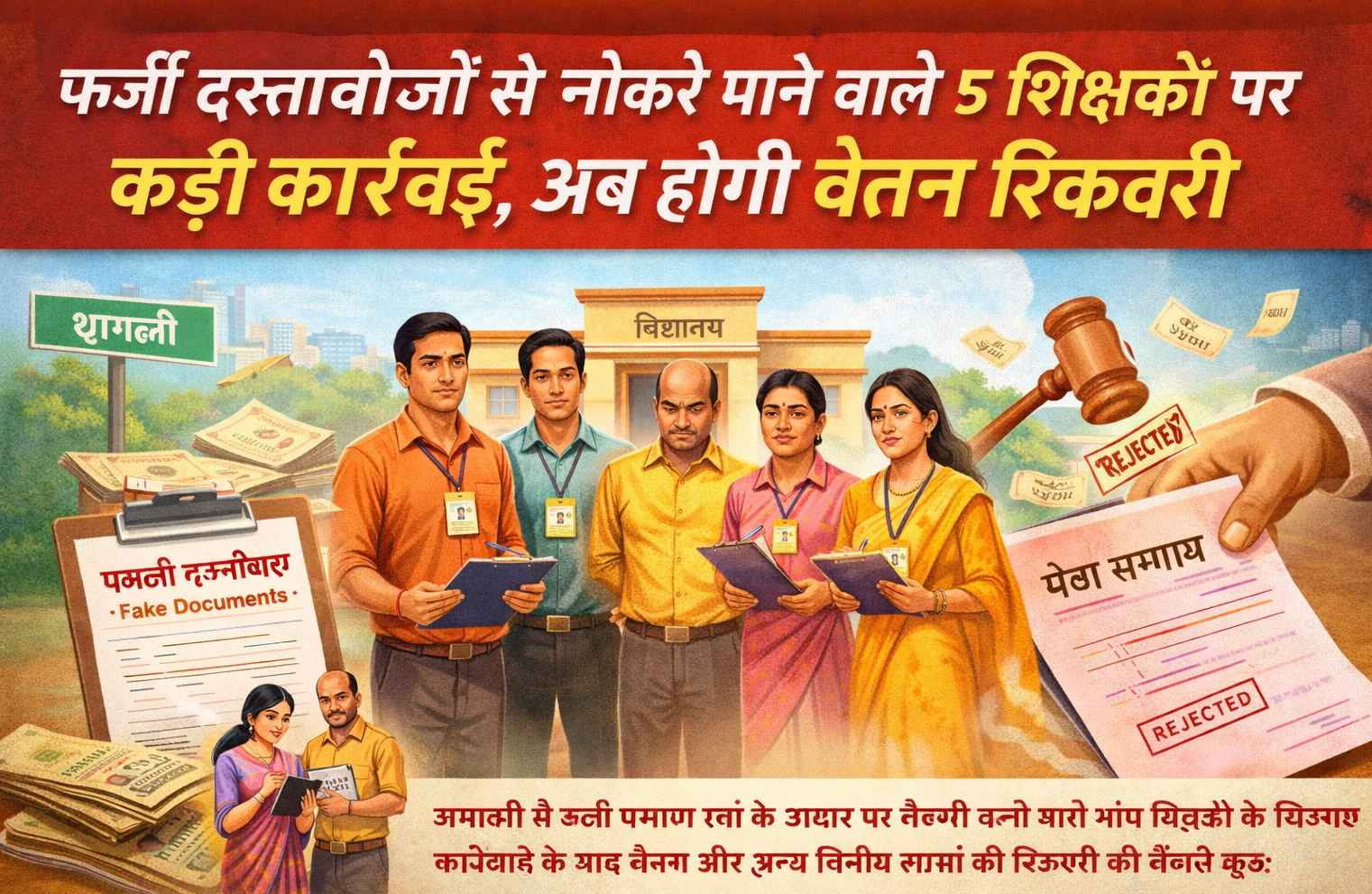 फर्जी दस्तावेजों से नौकरी पाने वाले 5 शिक्षकों पर कड़ी कार्रवाई, अब होगी वेतन रिकवरी