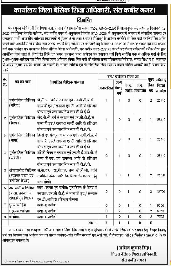Shikshak Bharti 2026:- कस्तूरबा विद्यालयों में चयन के सम्बन्ध में