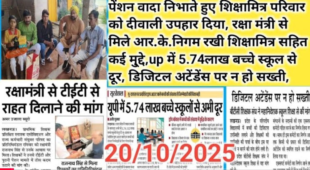 शिक्षामित्र परिवार को दीवाली उपहार दिया, रक्षा मंत्री से मिले आर.के.निगम रखी शिक्षामित्र सहित कई मु्द्दे, अटेंडेंस पर न हो सख्ती,, देखें