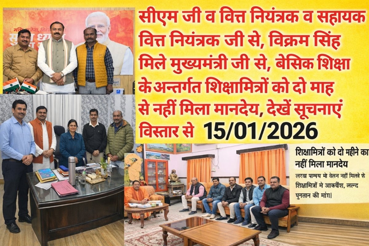 शिक्षामित्र पदाधिकारी मिले डिप्टी सीएम जी व वित्त नियंत्रक व सहायक वित्त नियंत्रक जी से, विक्रम सिंह मिले मुख्यमंत्री जी से, बेसिक शिक्षा के अन्तर्गत शिक्षामित्रों को दो माह से नहीं मिला मानदेय, देखें सूचनाएं विस्तार से