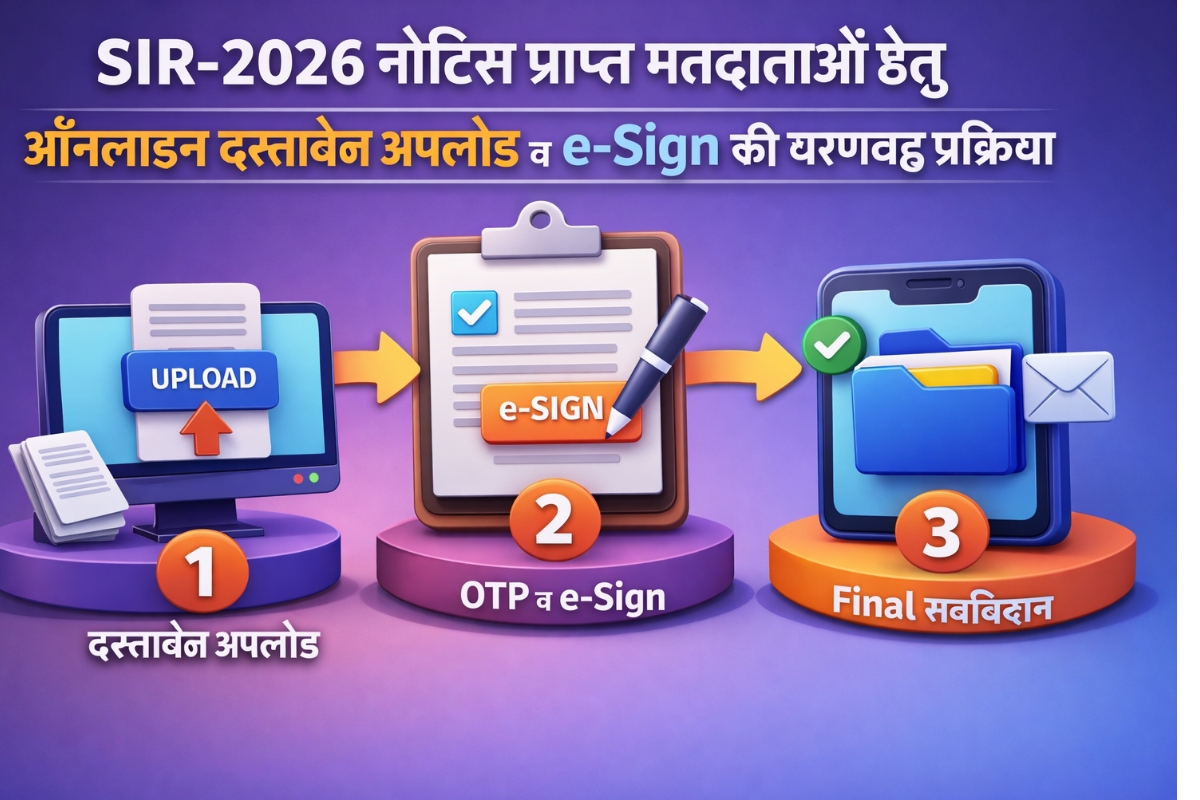 SIR-2026 नोटिस प्राप्त मतदाताओं हेतु ऑनलाइन दस्तावेज़ अपलोड व e-Sign की चरणबद्ध प्रक्रिया
