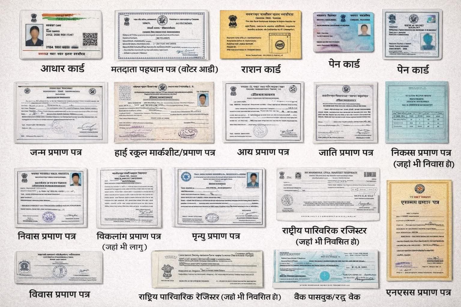 जिन मतदाताओं को नोटिस प्राप्त हुई है या होने वाली है, वे नीचे दिए गए 13 मान्य दस्तावेजों में से कोई एक दस्तावेज पहले से तैयार रखें।