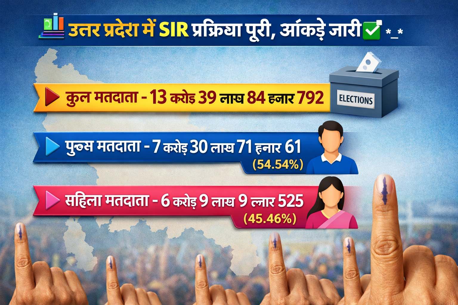 उत्तर प्रदेश में SIR (संक्षिप्त पुनरीक्षण) प्रक्रिया सफलतापूर्वक पूरी कर ली गई है। इसके बाद राज्य के कुल मतदाताओं के आधिकारिक आंकड़े जारी कर दिए गए हैं। चुनावी तैयारियों के लिहाज से यह अपडेट काफी अहम माना जा रहा है।