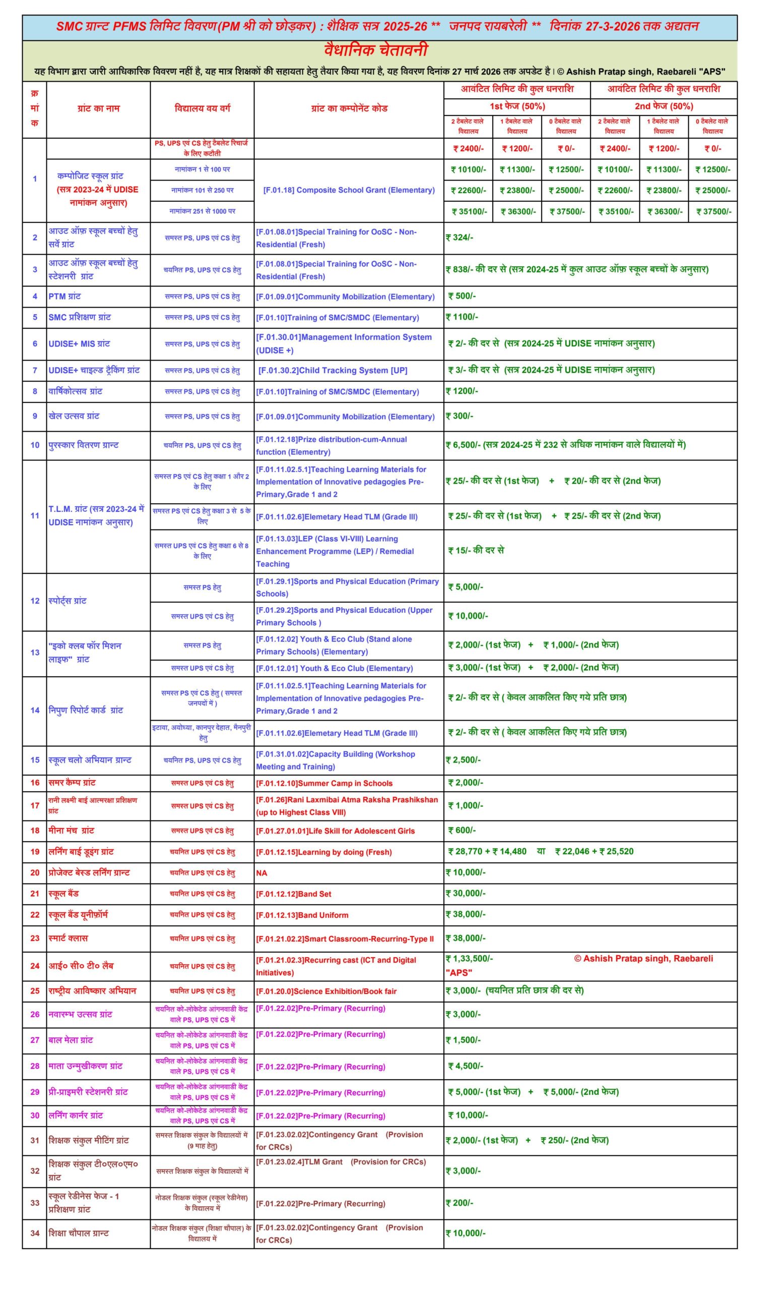SMC GRANT 27 मार्च 2026 तक अपडेट : जानिए किस मद में कितना रुपया आया खाते में March 28, 2026 by Ravi Singh SMC GRANT 27 मार्च 2026 तक अपडेट : जानिए किस मद में कितना रुपया आया खाते में