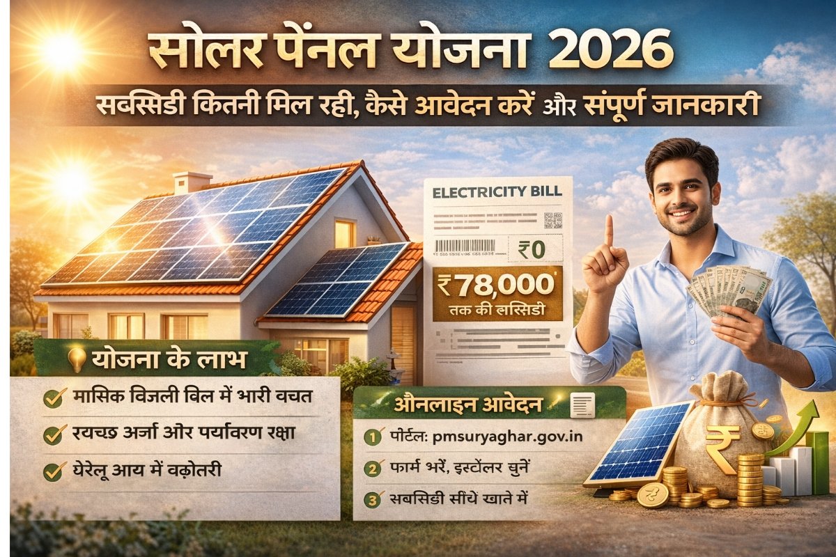 सोलर पैनल योजना 2026: सब्सिडी कितनी मिल रही है, कैसे आवेदन करें और पूरी जानकारी