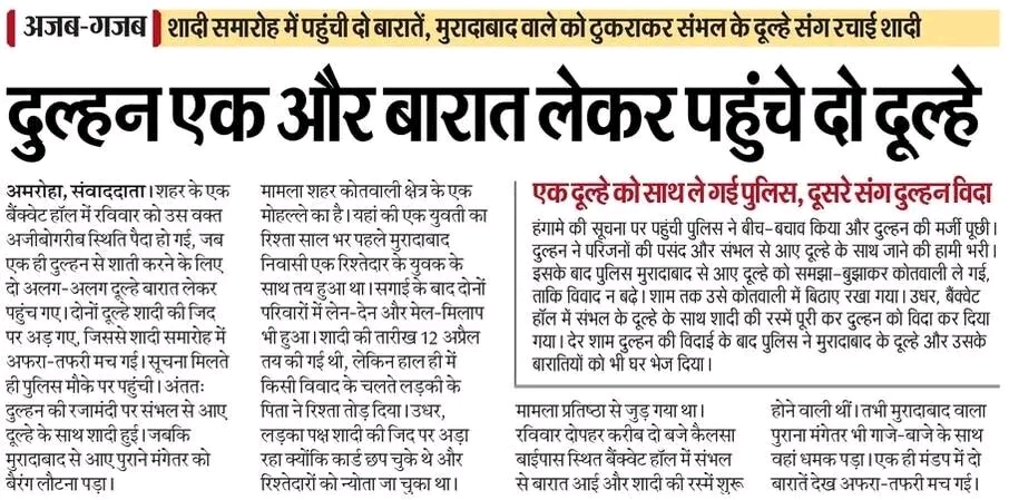 इसके बाद उसने संभल से आए दूल्हे के साथ शादी करने की हामी भर दी। परिवार और मौजूद लोगों ने भी आखिरकार उसी फैसले को मान लिया।