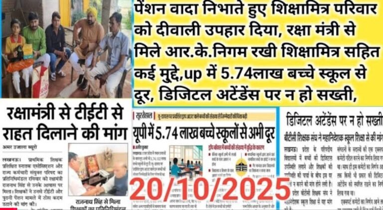 शिक्षामित्र परिवार को दीवाली उपहार दिया, रक्षा मंत्री से मिले आर.के.निगम रखी शिक्षामित्र सहित कई मु्द्दे, अटेंडेंस पर न हो …