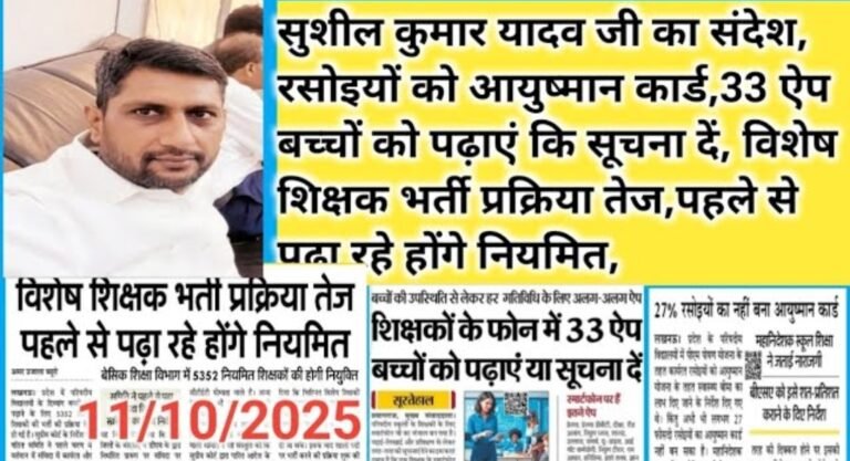 सुशील कुमार यादव जी का बड़ा संदेश, रसोइयों को आयुष्मान कार्ड, पहले से पढ़ा रहे होंगे नियमित, विशेष शिक्षक भर्ती प्रक्रिया तेज