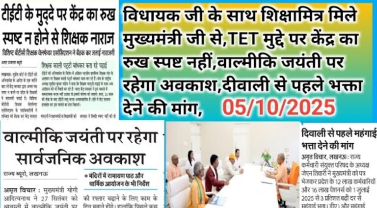 शिक्षामित्र मिले मुख्यमंत्री जी से,TET मुद्दे पर केंद्र का रुख स्पष्ट नहीं,वाल्मीकि जयंती पर रहेगा अवकाश,दीवाली से पहले भक्ता देने …