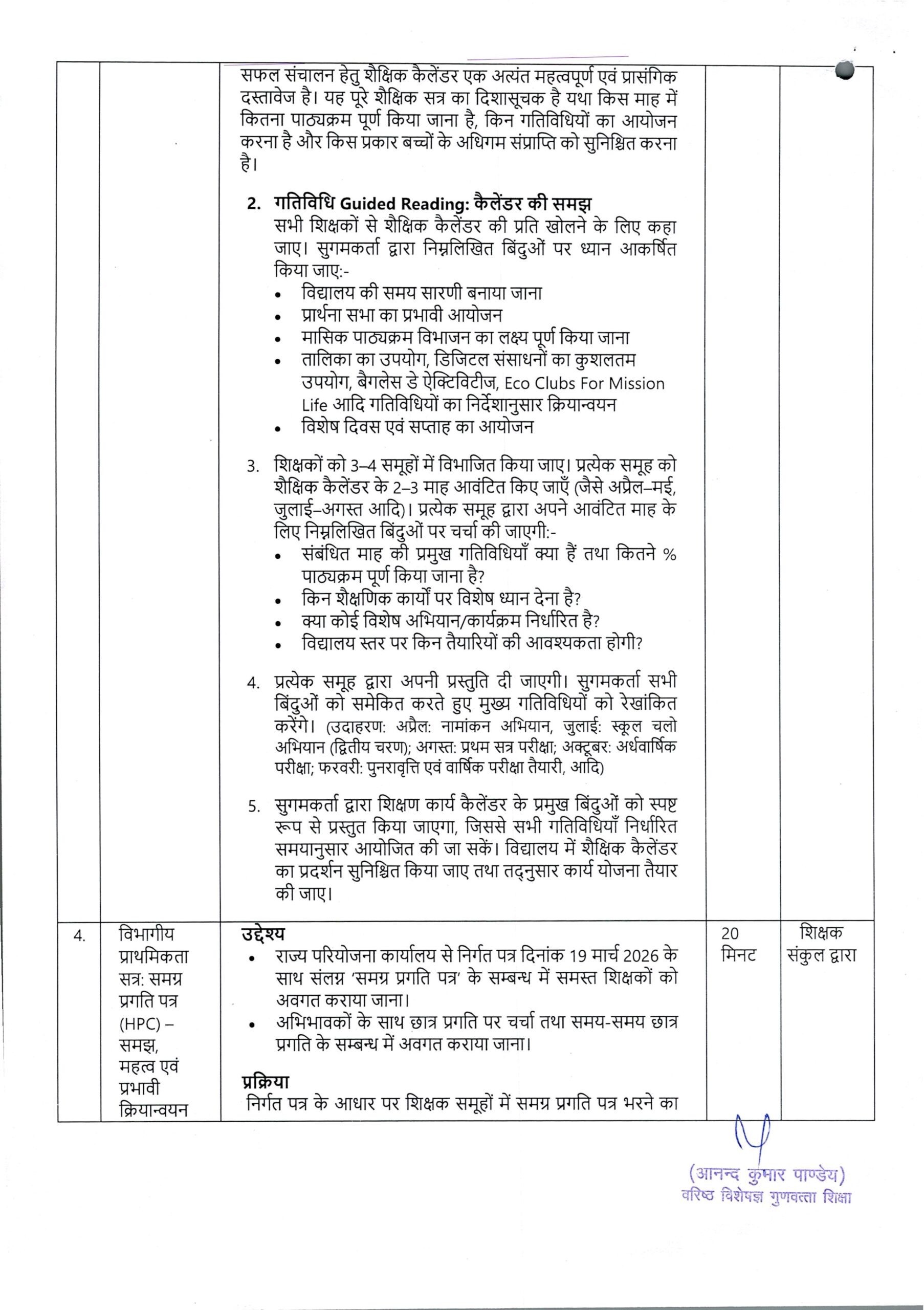 माह अप्रैल, 2026 में शिक्षक संकुल बैठक के आयोजन के संबंध में आदेश, बैठक एजेंडा