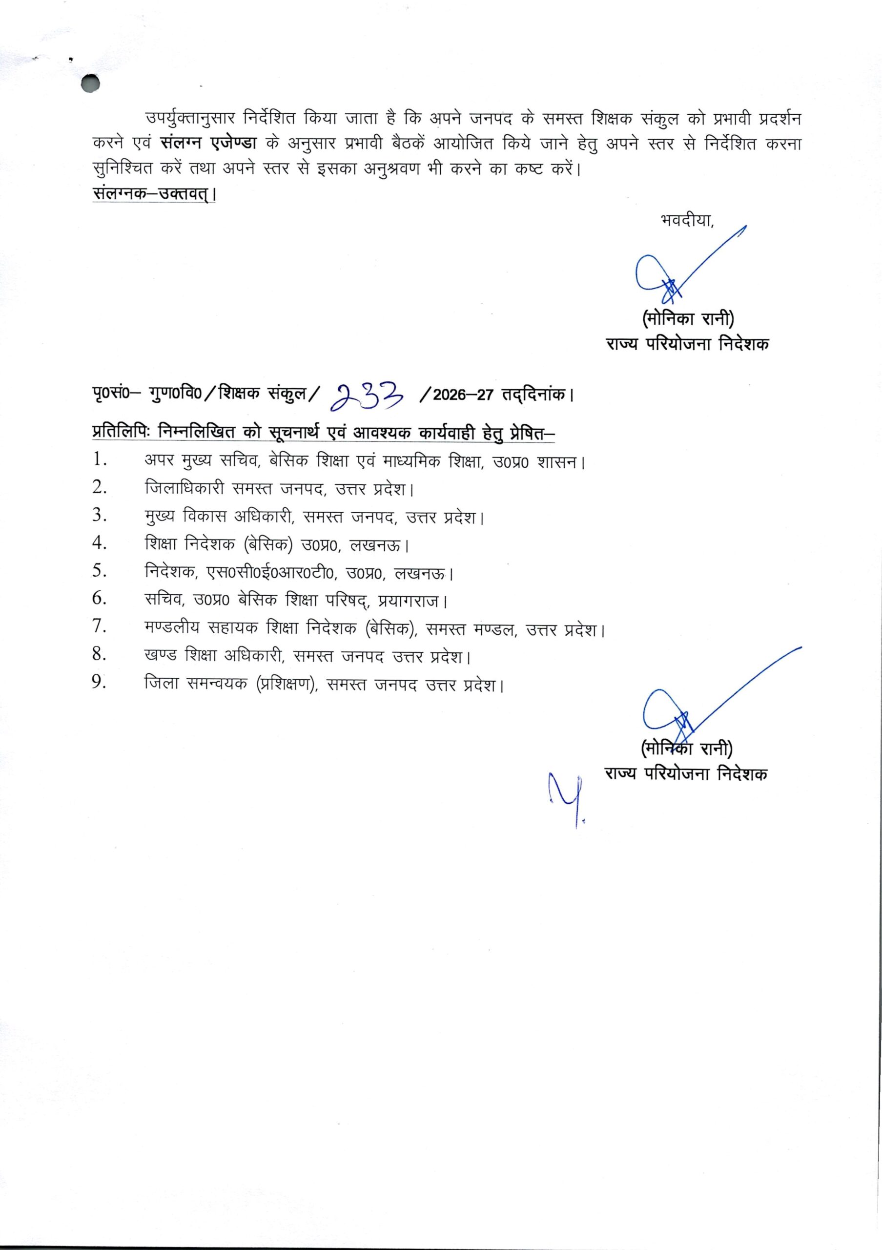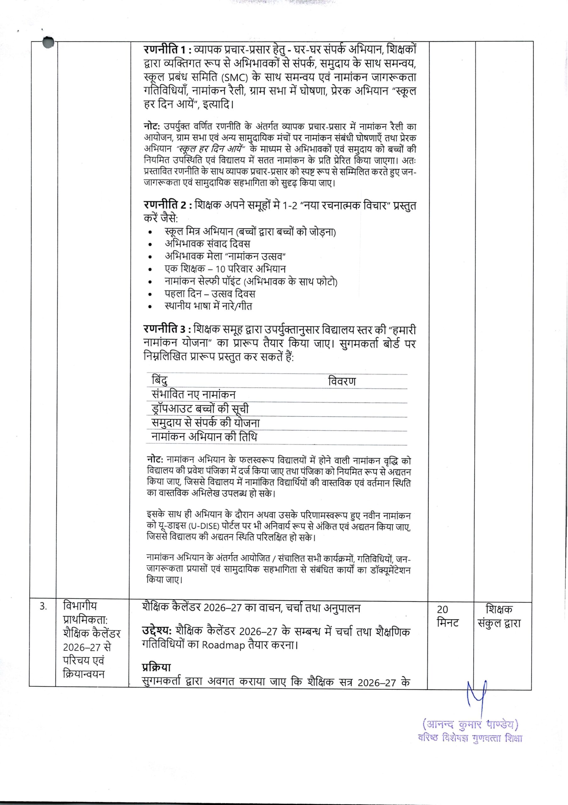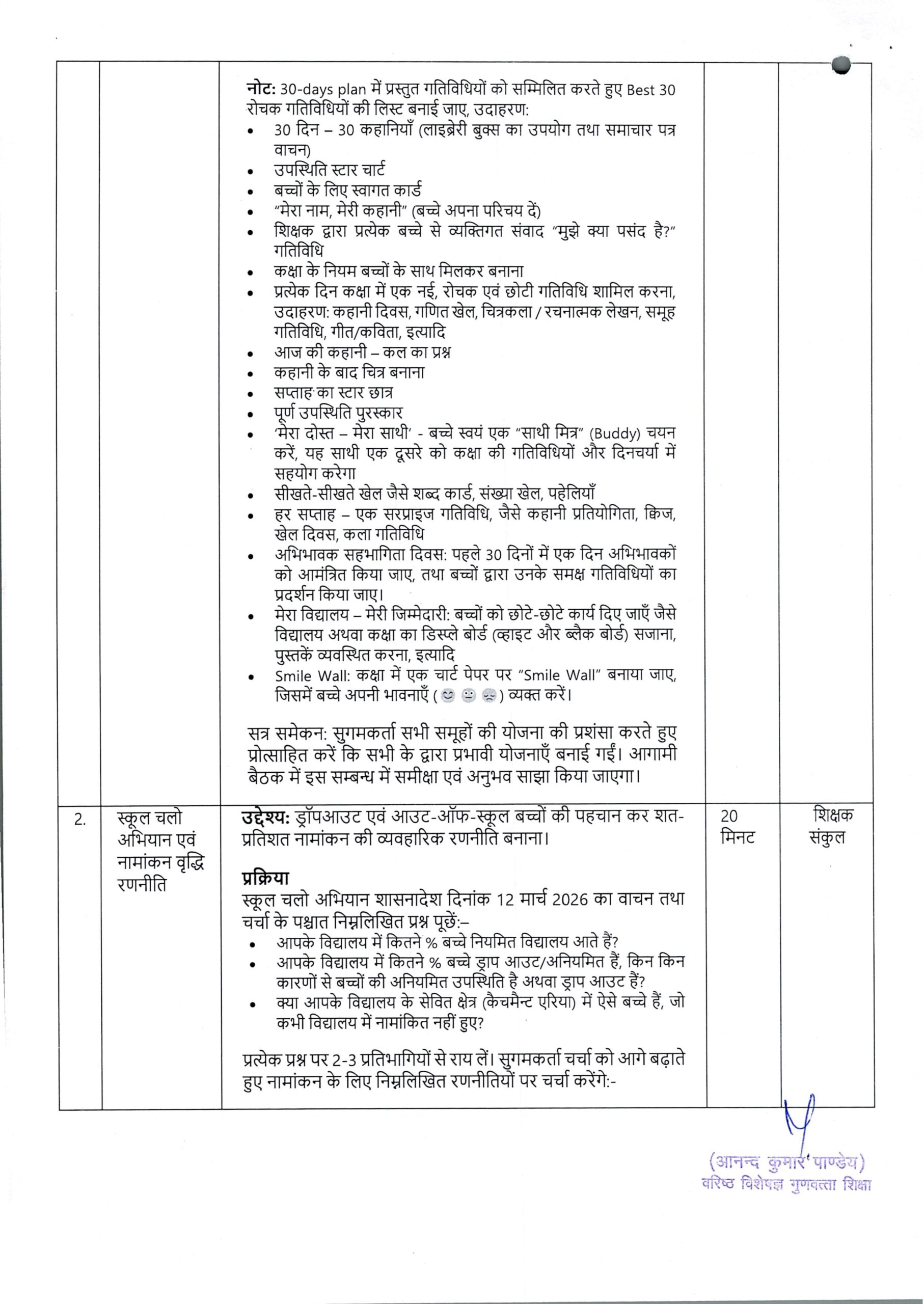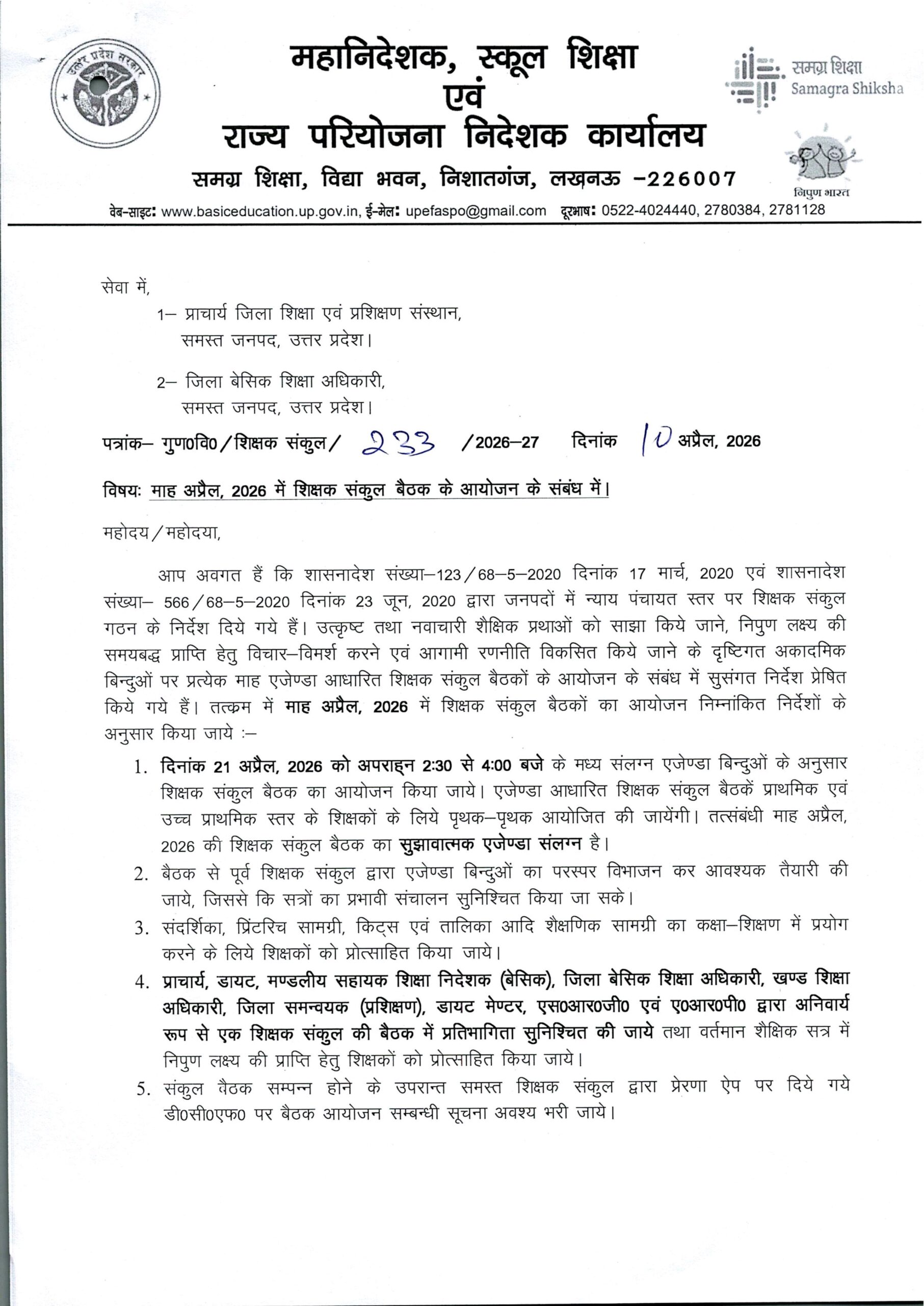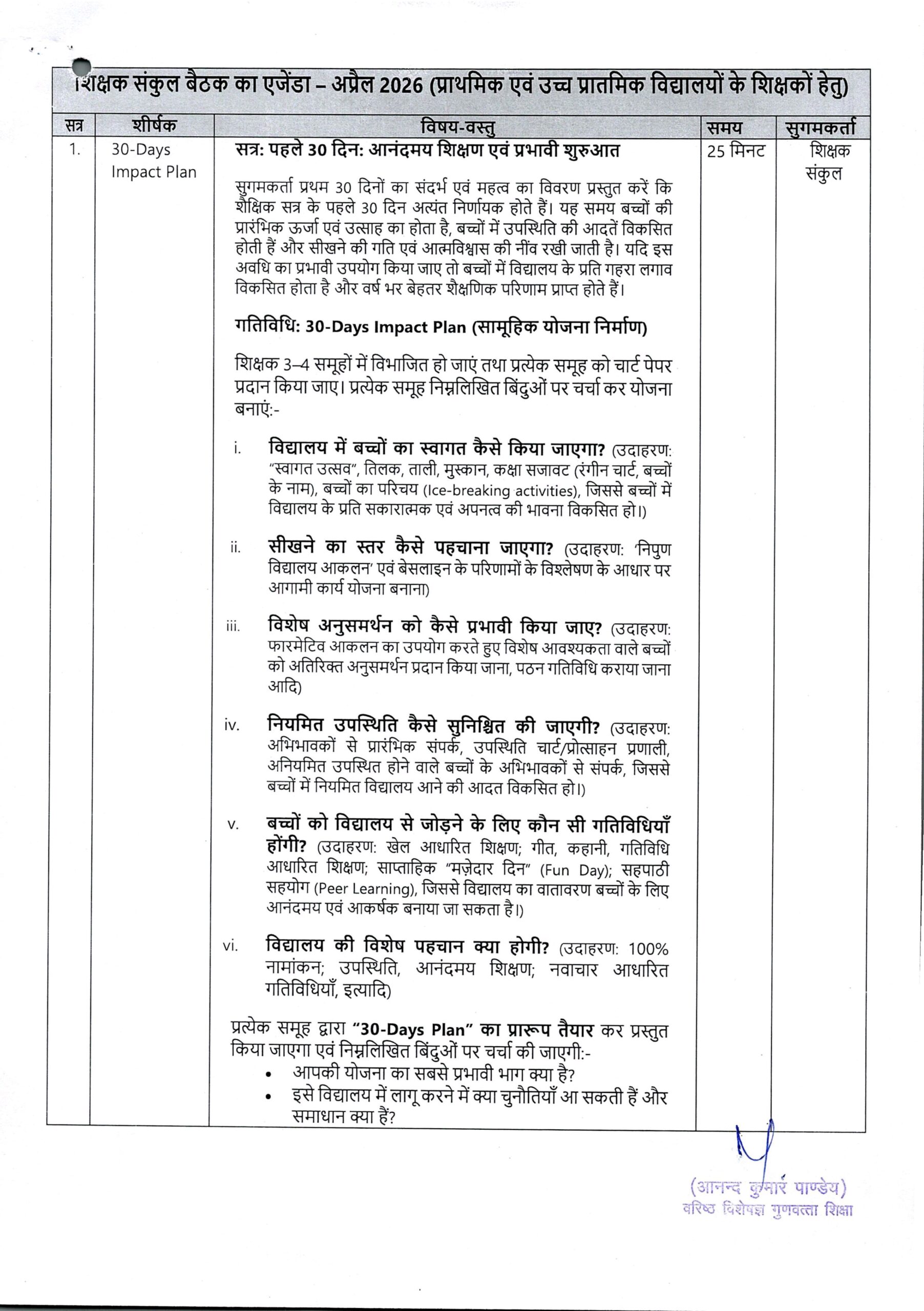 माह अप्रैल, 2026 में शिक्षक संकुल बैठक के आयोजन के संबंध में आदेश, बैठक एजेंडा