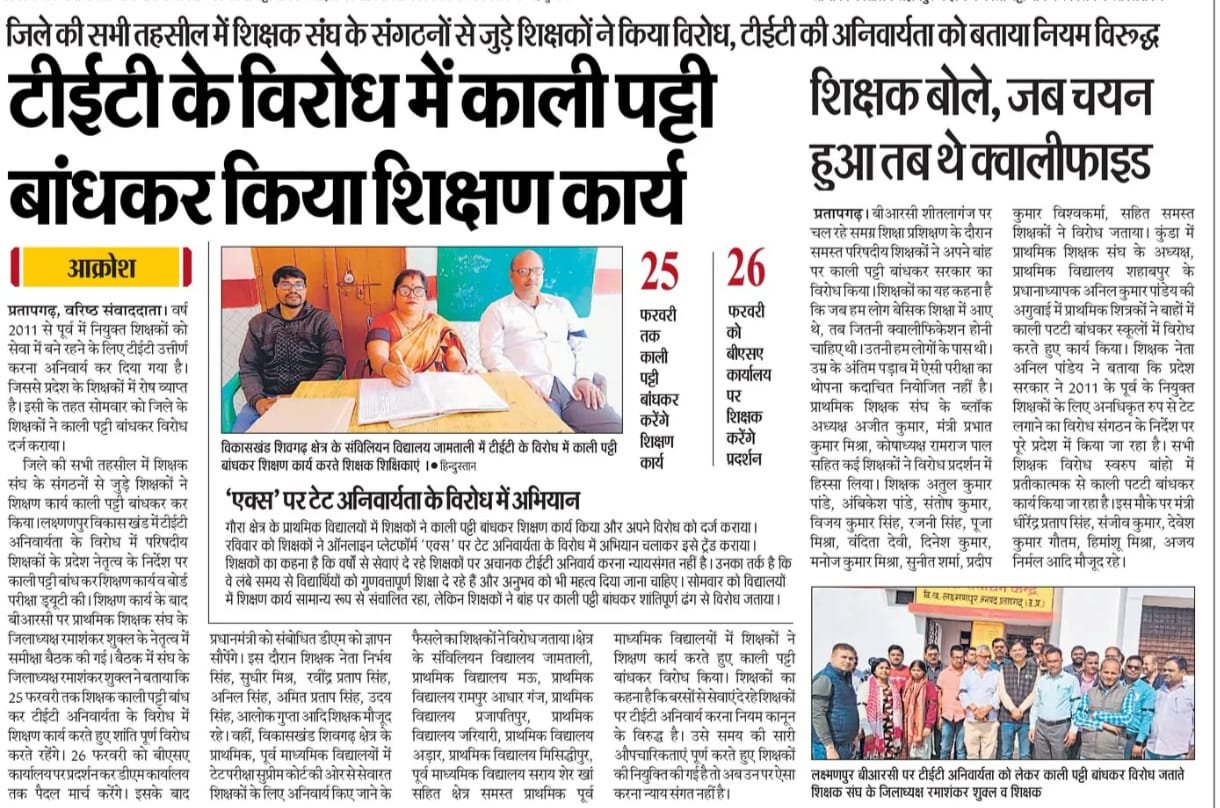 शिक्षक बोले, जब चयन हुआ तब थे क्वालीफाइड: जिले कीमें शिक्षक संघ के संगठनों से जुड़े शिक्षकों ने किया विरोध, टीईटी की अनिवार्यता को बताया नियम विरुद्ध