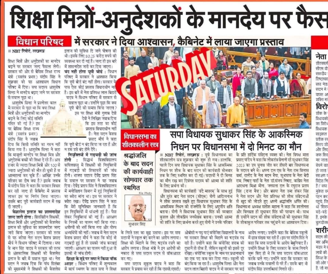 आशुतोष सिन्हा ने प्रश्नोत्तर काल में सरकार से पूछा था कि क्या शिक्षा मित्रों और अनुदेशकों का मानदेप बढ़ाने के लिए कोई समिति गतित की गई है? इस पर बेसिक शिक्षा राज्य मंत्री (स्वतंत्र प्रभार) संदीप सिंह ने नवाब से दिया कि किसी समिति का गहन नहीं किया गया है। आशुतोष सिन्हा ने कहा कि मामूली मानदेय पर शिक्षा मित्र और अनुदेशक बच्चों को शिक्षा दे रहे है। आड हजार से ज्यादा शिक्षा मित्रों और 100 ज्यादा अनुदेशकों की मौत हो चुकी है या आत्महत्या कर चुके हैं। आन्खिर उनके परिवार का दोष क्या है? इसके जवाच में संदीप सिंह ने कहा कि सरकार विचार कर रही जल्द ही कैचिनेट में प्रस्ताव लाकर इस पर निर्णय लिया जाएगा। उसके बाद पूरी कार्यवाही सदन में रखदी जाएगी।