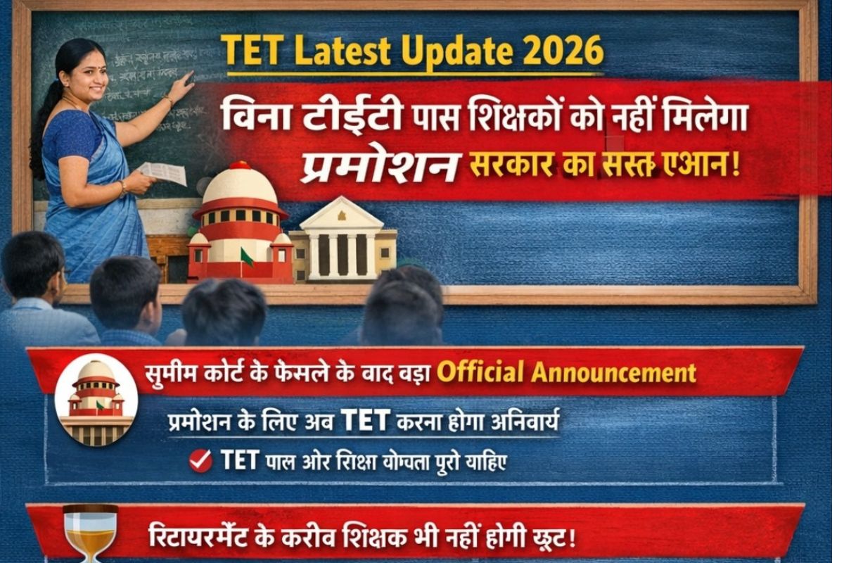 TET Update 2026: बिना टीईटी पास किए शिक्षकों को नहीं मिलेगा प्रमोशन, सरकार का बड़ा साफ ऐलान