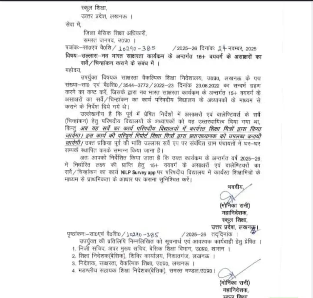 समस्त शिक्षामित्र Ullas App पर निरक्षर सर्वे को पूर्ण करना सुनिश्चित करेंग : मोनिका रानी महानिदेशक