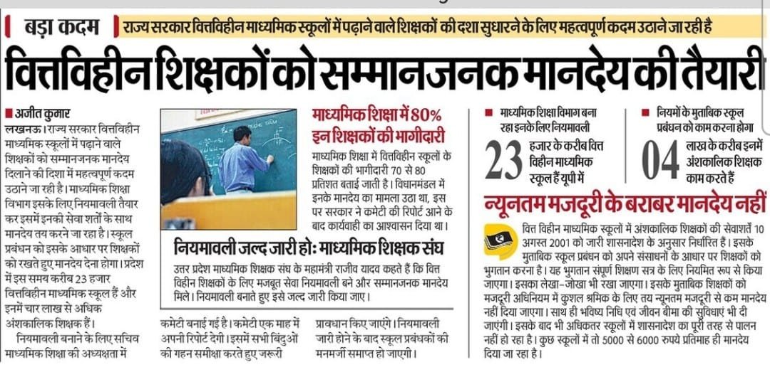 वित्तविहीन शिक्षकों को सम्मानजनक मानदेय की तैयारी