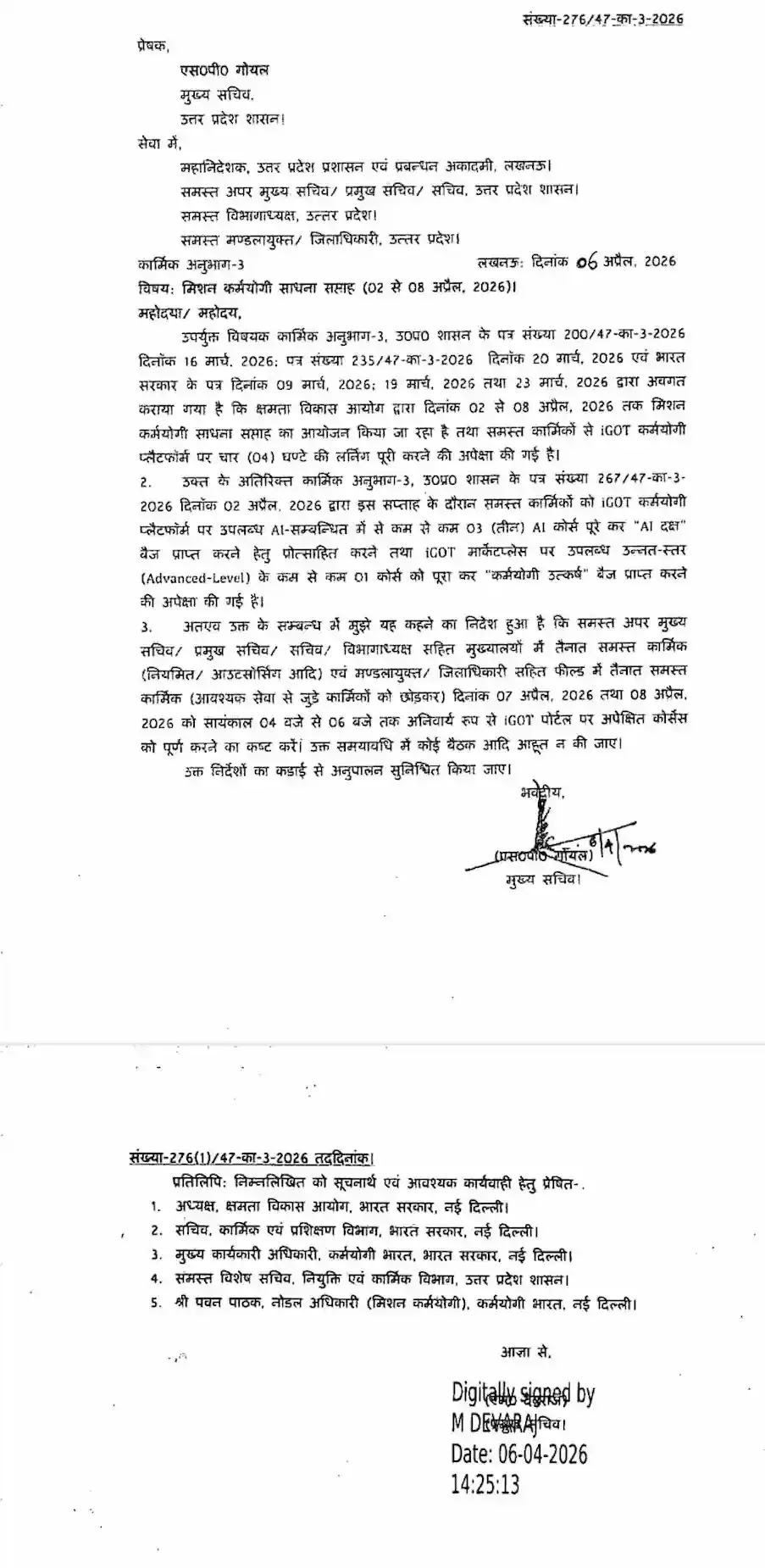 यूपी के सरकारी कर्मचारियों के लिए iGOT प्लेटफॉर्म पर 4 घंटे की लर्निंग के साथ AI कोर्स करना अनिवार्य; देखें मुख्य सचिव का आदेश