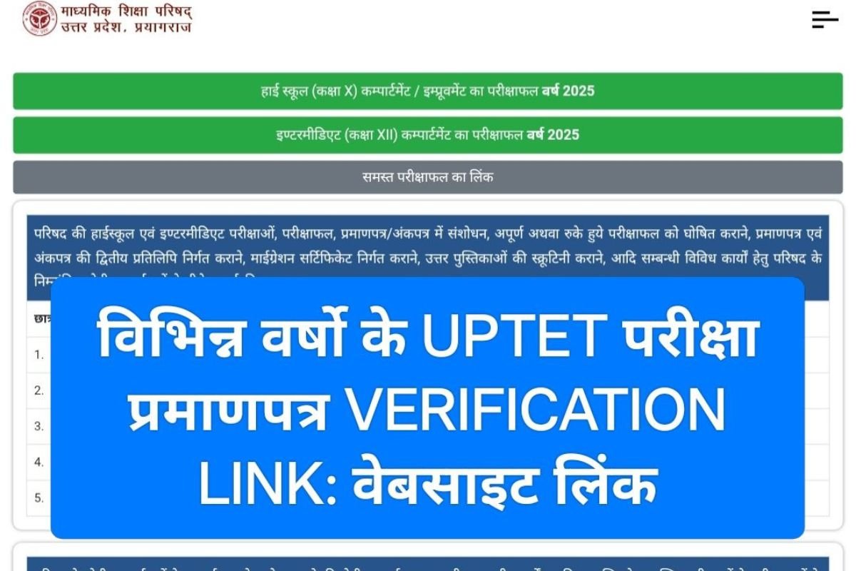 UPTET प्रमाणपत्र VERIFICATION LINK: वेबसाइट लिंक: यहाँ वर्षवार रिजल्ट की pdf दी जा रही आप सम्बन्धित लिंक
