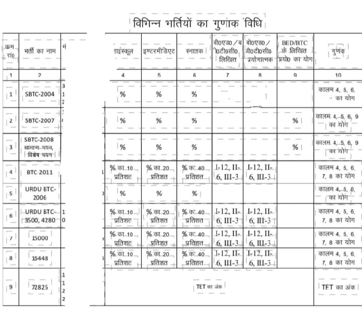 विभिन्न शिक्षक भर्तियों के गुणांक निर्धारण विधि, जिसकी मेरिट पर हुई थी यह भर्तियां