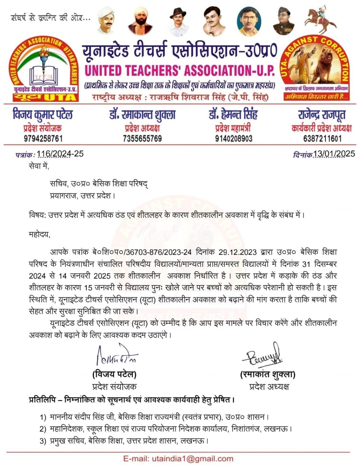Winter holidays: अत्यधिक ठंड एवं शीतलहर के कारण शीतकालीन अवकाश में वृद्धि के संबंध में। January 14, 2025 by Jaswant Singh Winter holidays: अत्यधिक ठंड एवं शीतलहर के कारण शीतकालीन अवकाश में वृद्धि के संबंध में। School Holidays: फिर से बढ़ा स्कूलों का अवकाश, अब इस तारीख को खुलेंगे विद्यालय; जिला विद्यालय निरीक्षक के आदेश